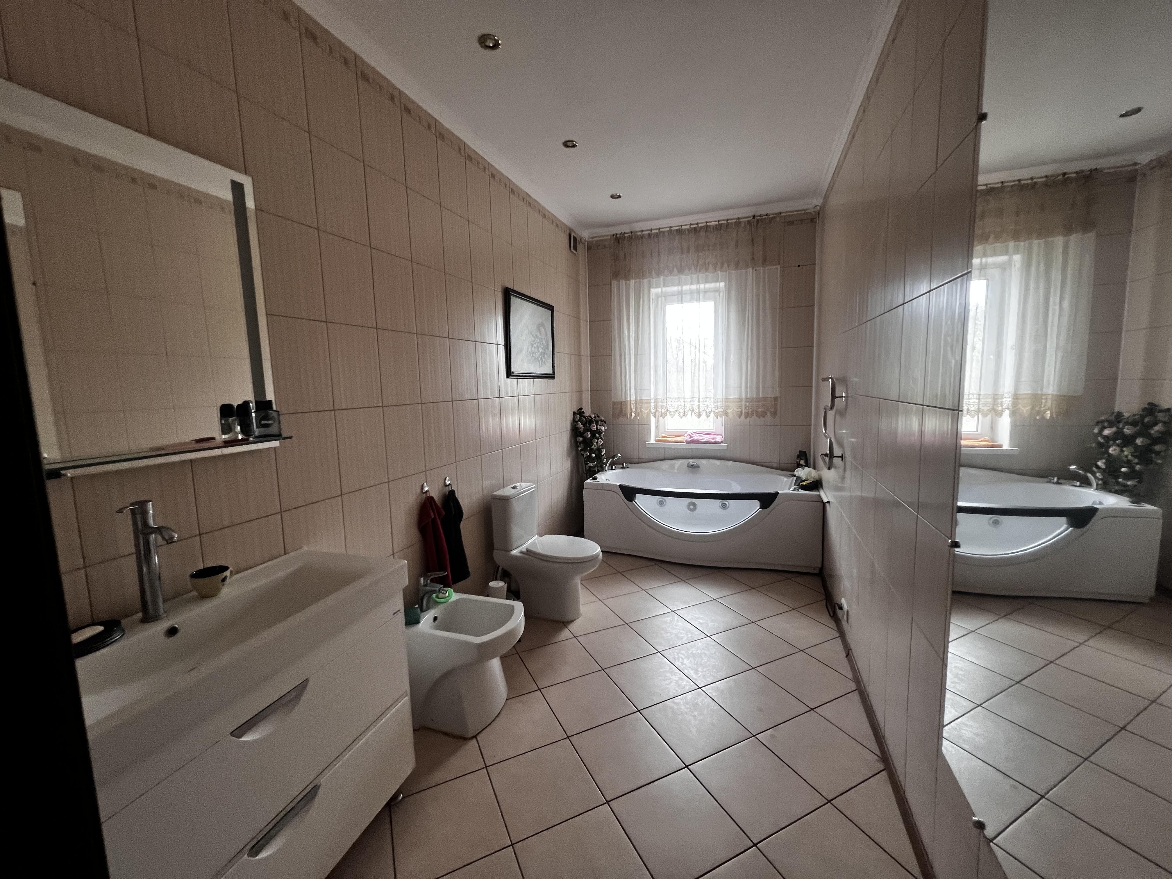 Продаж чудового двоповерхового 6 кім. будинку, виконаний якісний ремонт, повністю мебльований, виконаний ландшафтний дизайн земельної ділянки, є сауна, літня тераса, сад, гараж, земельна ділянка 28 соток, межує з сосновим лісом, ідеальний варіант для великої родини та людей які хочуть провести пенсію в тихому красивому місці неподалік столиці. Будинок побудований з піноблоку у 2010 році, утеплений пінопластом (100 мм) та облицьований "короїдом". Загальна площа 220 м2, житлова 130 м2, кухня 13 м2, 2 санвузла, індивідуальне газове опалення, камін, на випадок форс мажора є генератор, власний зариблений ставок, гараж з терасою 77 м2, автоматична система поливу ділянки, сад, 2 скважини, меблі, техніка та інший господарський інвентар входить до вартості будинку. До м. Києва 45 хв. автомобілем.
