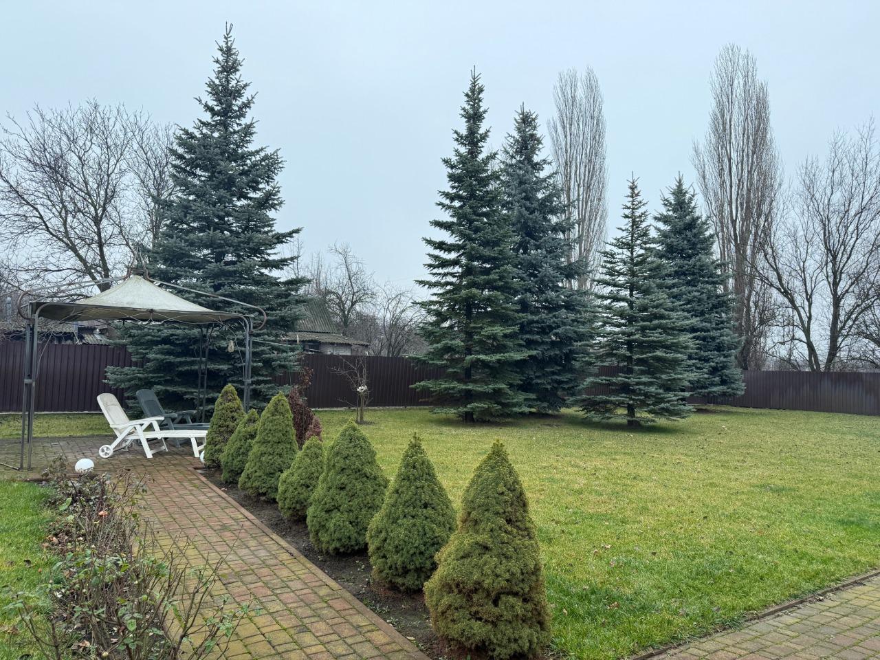 Фасад ділянки та вся внутрішня територія двору викладені тротуарною плиткою, що забезпечує зручність і охайний вигляд.
