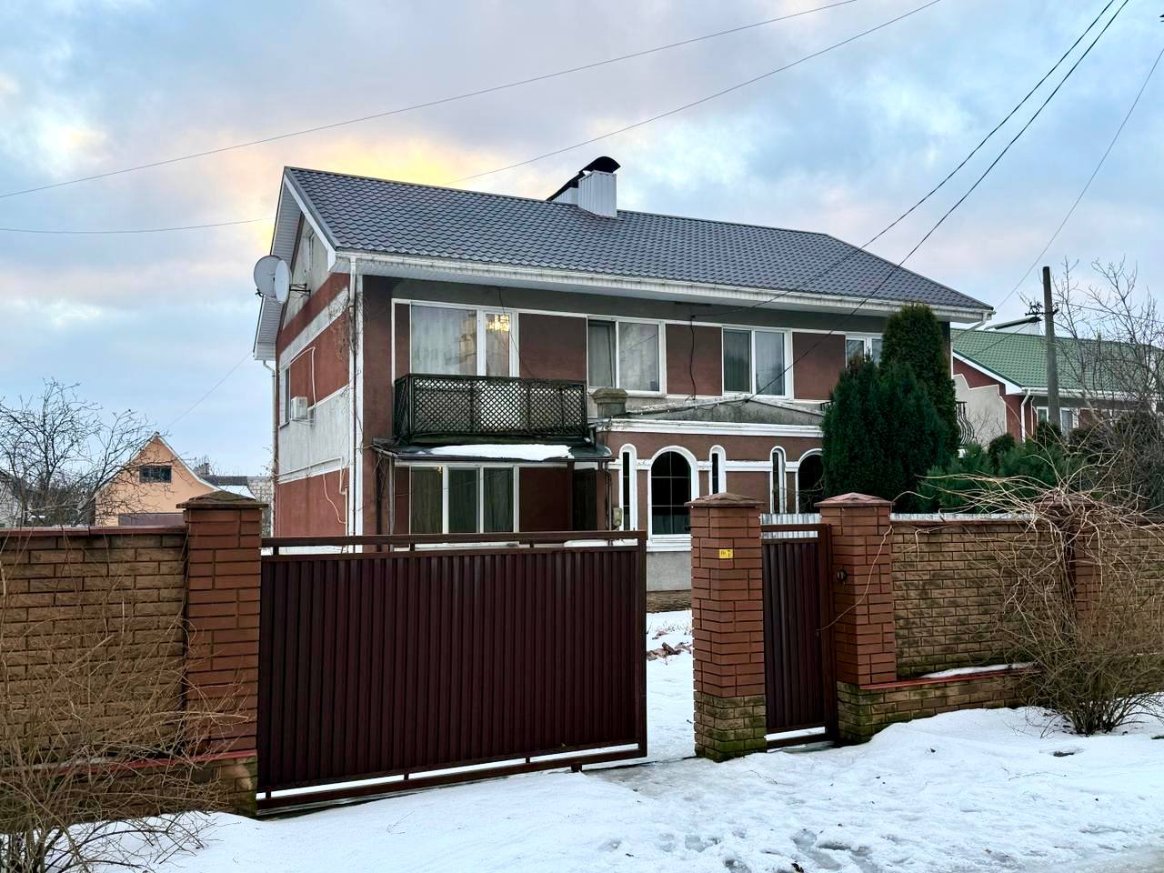 Будинок збудований із цегли, перекриття залізобетонні, покрівля — металочерепиця. Опалення індивідуальне газове, водопостачання зі свердловини, каналізація — септик. Виконаний хороший ремонт, частково залишаються меблі.